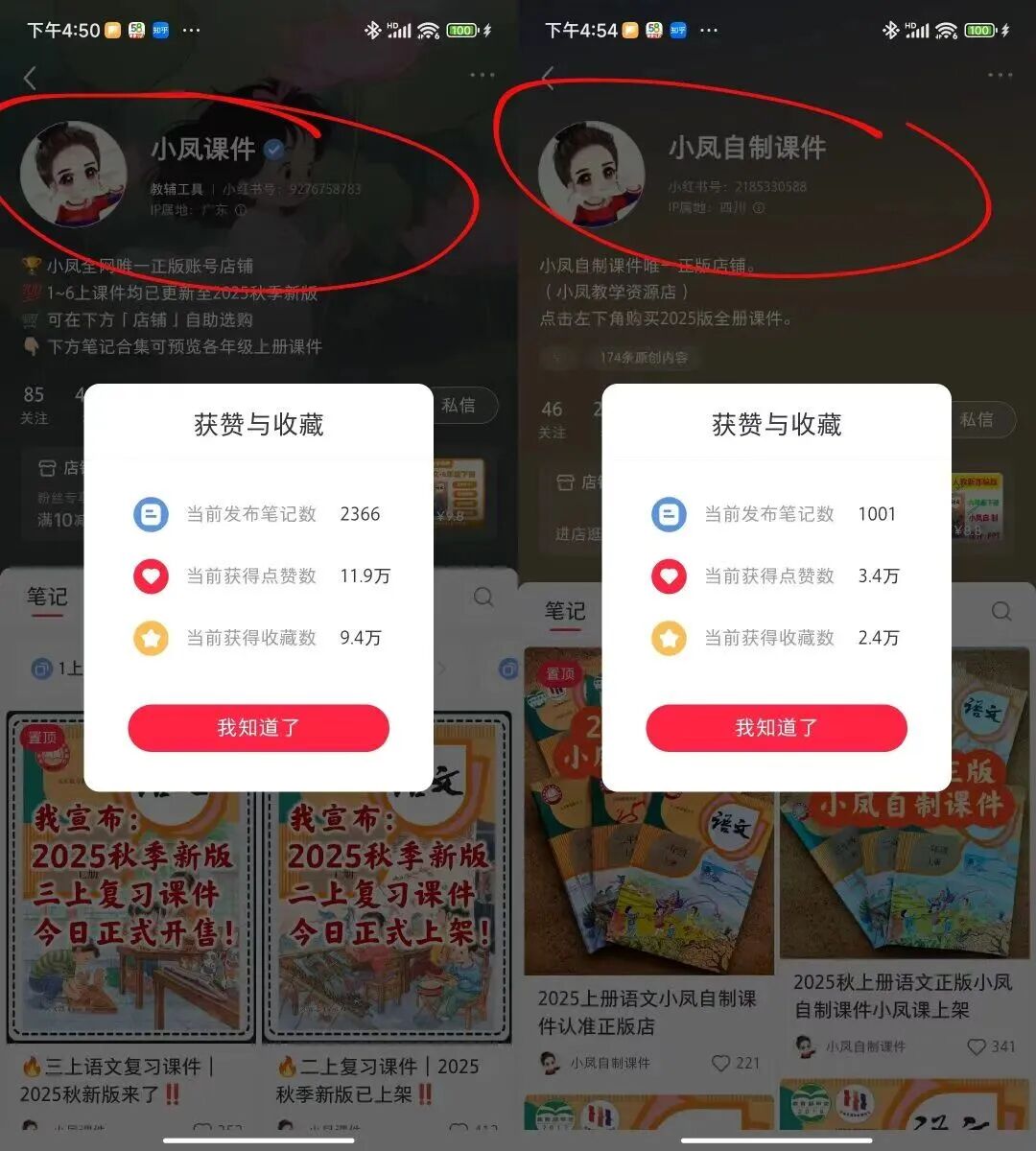它的二创对象是一个叫“小凤自制课件”的账号,对方还在主页置顶维权,说“小凤课件”盗用原创资料,这也能证明两个号根本不是同一个人。但有意思的是,维权没啥用,“小凤课件”的销量反而远超原创号,这就是二创的魔力。