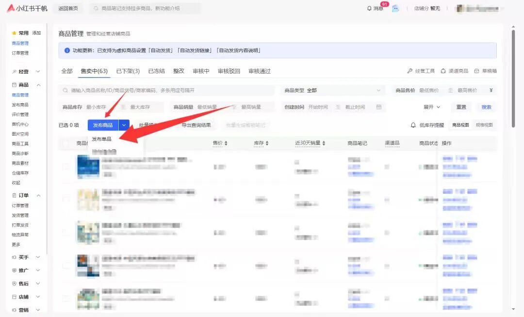 在小红书的千帆后台,直接点“发布商品”就行。