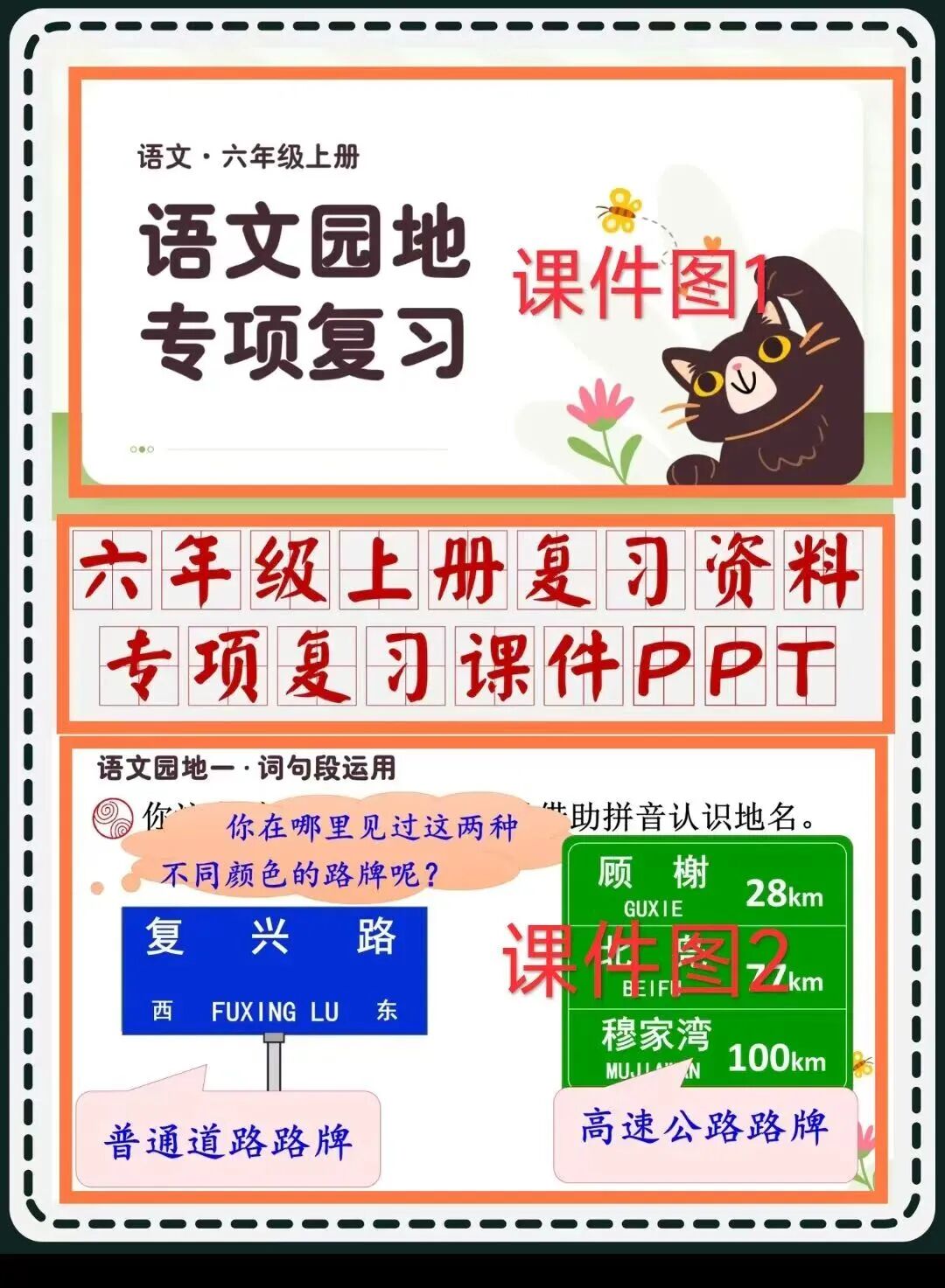 它的笔记封面都是两张课件图上下拼合,然后在上面加个带背景色的标题文字,简单又醒目。