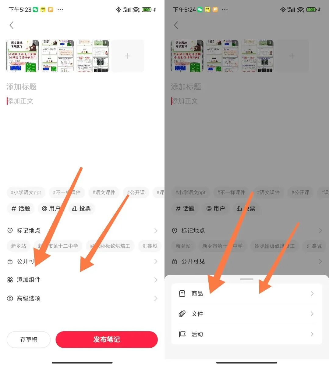 但千万别忘了最关键的一步——把你要卖的课件商品挂到笔记上,这样别人刷到笔记,就能直接点进去购买,不然就算笔记火了,也带不来销量。